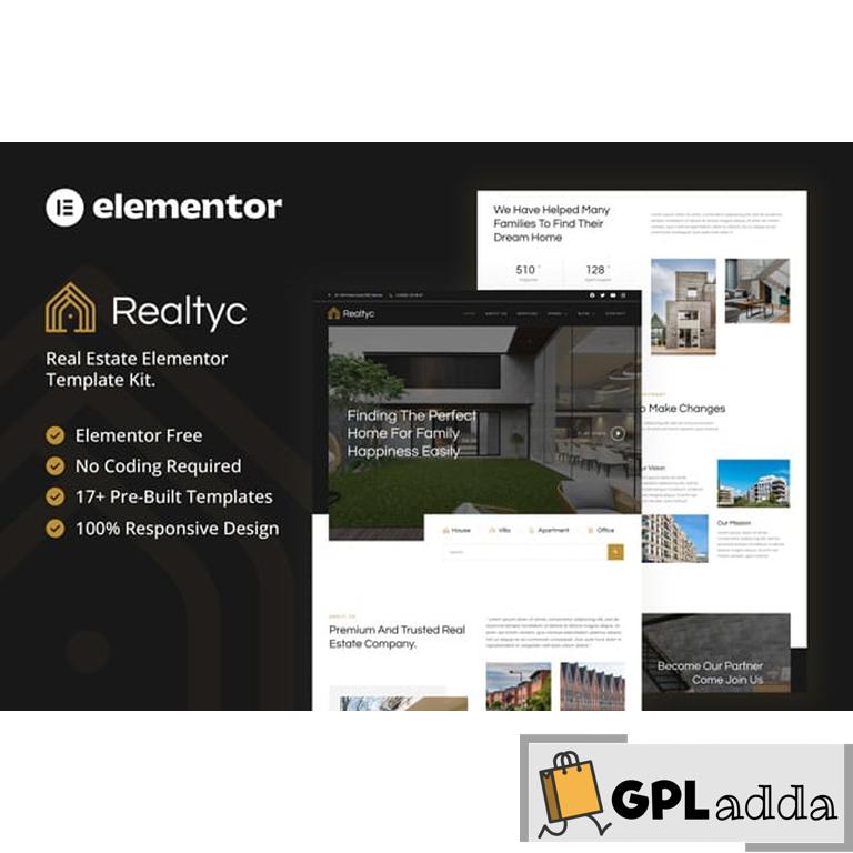 Realtyc is anElementor Template Kit specifically tailored for real estate businesses and agencies. It offers a modern, sleek, and customizable design that is suitable for anyone, regardless of their technical knowledge or experience in website development. The kit includes a wide range of 17+ unique and stunning templates, each designed to showcase your property listings and services in an engaging and visually appealing way.