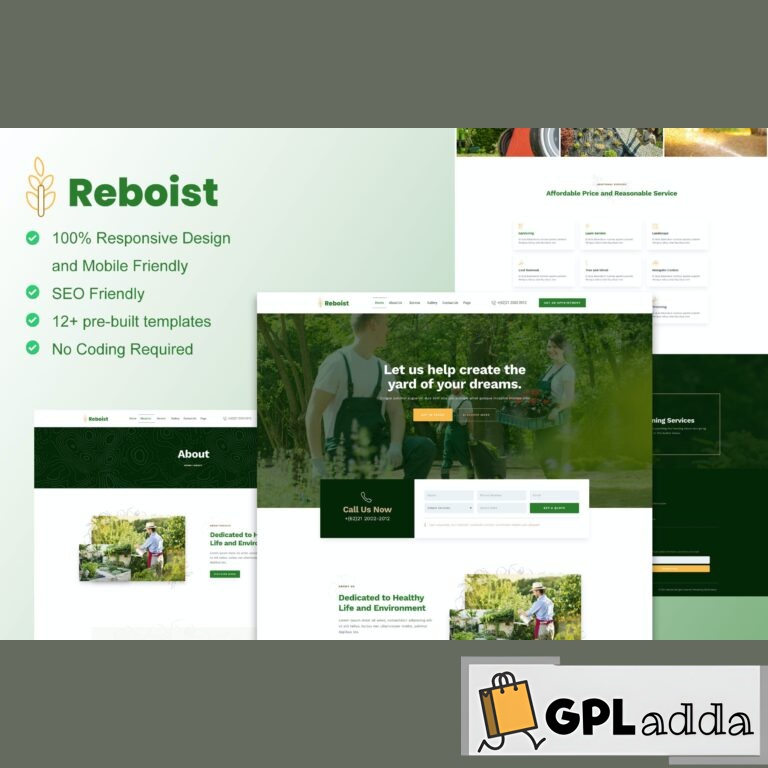 Reboist is elementor template kit for gardening website and its related services. This template kit is perfect for gardening, landscape, decoration, even for lawn service website. It has 12+ pre-built templates with cool design and modern style. You can easily make beautiful green landscape & gardening website with this elementor template kit.