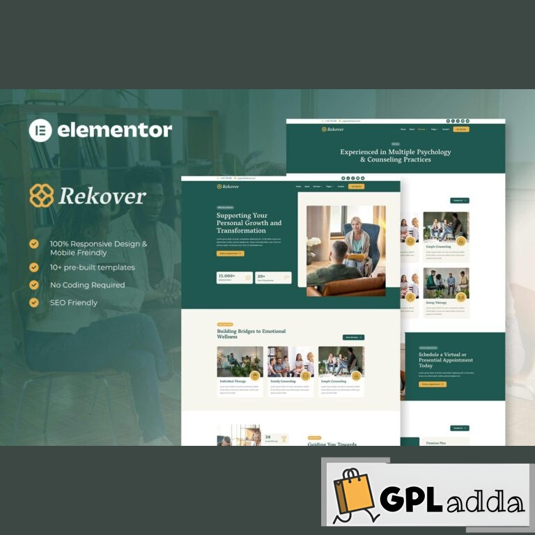 Rekover is a modern and elegant Elementor Template Kit designed for psychology and counseling services. It is suitable for therapists, psychiatrists, online counselors, mental health clinics, and more. The kit features a clean and responsive layout, making it easy to customize without any coding knowledge.