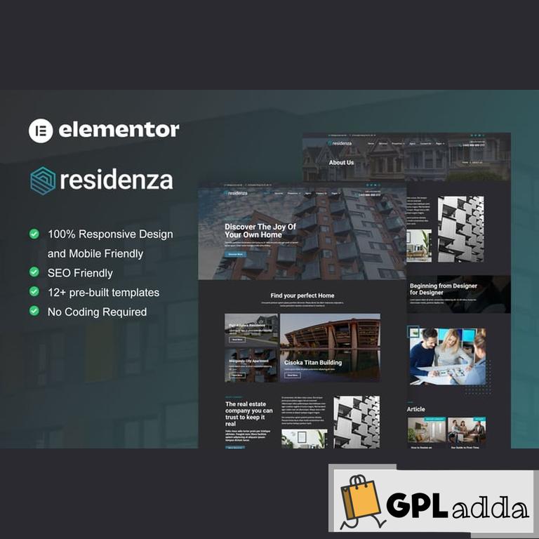 Residenza is elementor template kit for real estate & property listing website. This template kit is perfect for real estate, property agent, interior designer, property listing, apartment agencies, architecture, and even furniture website. It has 12+ pre-built templates with cool design and modern style. You can easily make beautiful website with this elementor template kit.