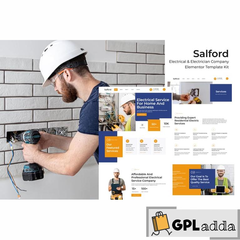 Salford – Electrical & Electrician Service Company Elementor Pro Template Kit created especially for for all electrician and electricity services businesses website.