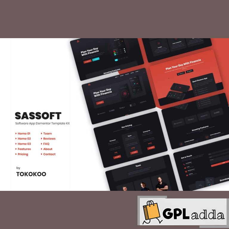 Sassoft – Mobile App & Fintech Startup Elementor Template Kit