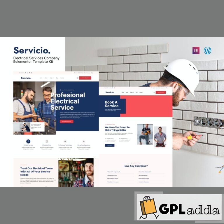 Servicio is an Electrician and Electrical Services Template Kit perfect for an electrician and electrical services company, electrical installation, handyman, air conditioning services, or any home improvement and maintenance services. Built with a contemporary and modern design and also easy to customize.