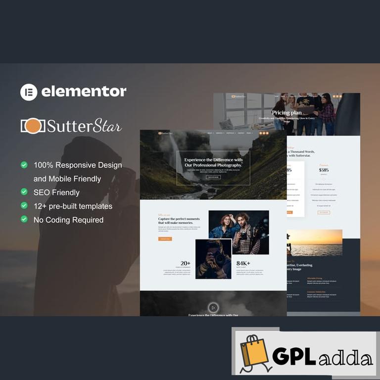 SutterStar – Photography Services & Portfolio Elementor Template Kit