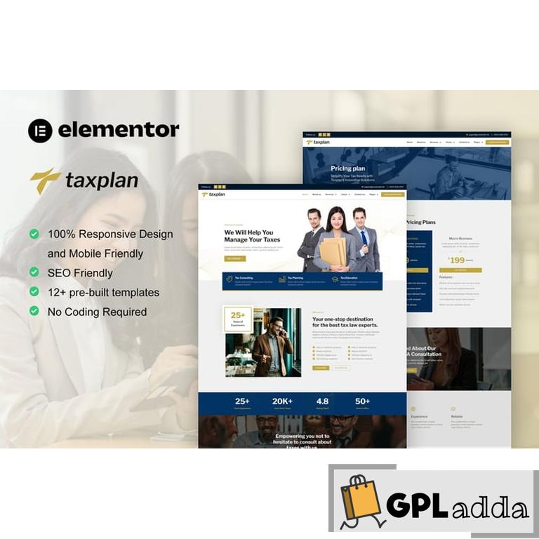 TaxPlan – Tax Advisor & Financial Consulting Elementor Pro Template Kit