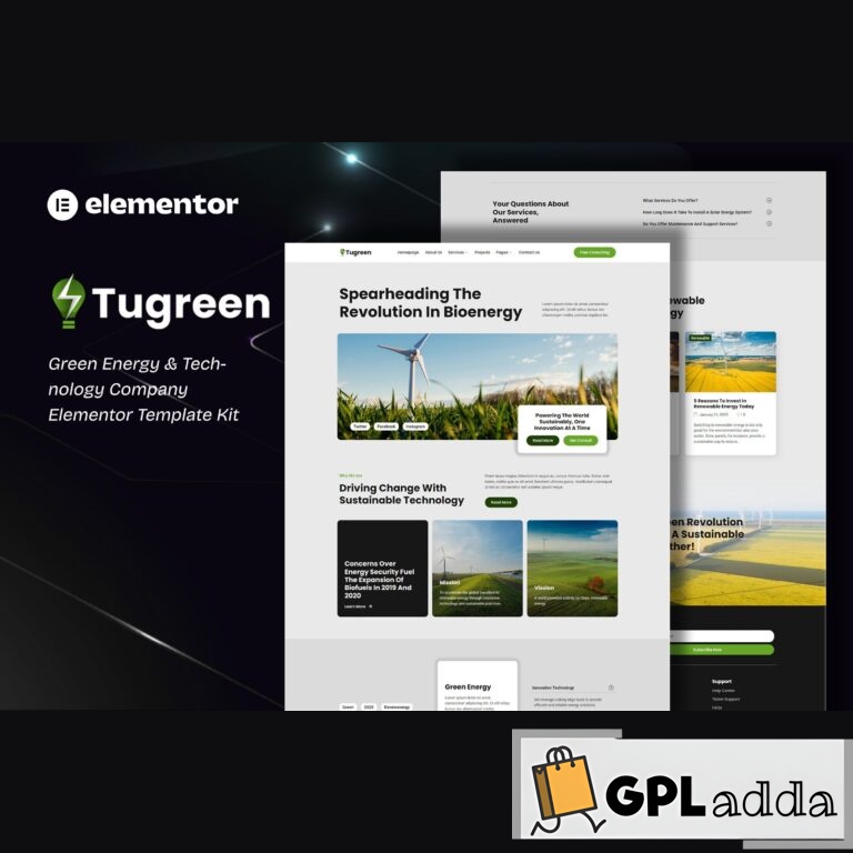 Tugreen specially designed for Green Energy & Technology Company! This kit has a modern and creative design with a 100% fully responsive layout, easy installation, and sure very easy to customize because using Elementor so you don’t need a single line of coding! Save your time. This Template Kit contains page content for creating Elementor pages. This kit has been optimized for use with the free “Hello Elementor” theme.
