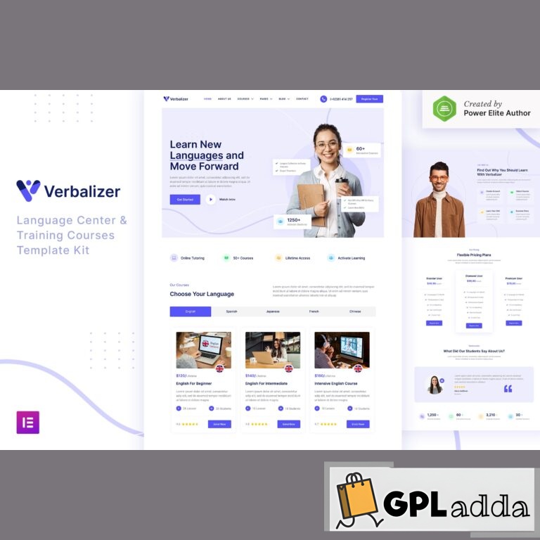 Verbalizer is a modern and clean Elementor Template Kit perfect for Language Center & Training Courses, Language Schools, Online Courses, and more. It features a professional design with a 100% responsive layout and is easy to customize with Elementor.