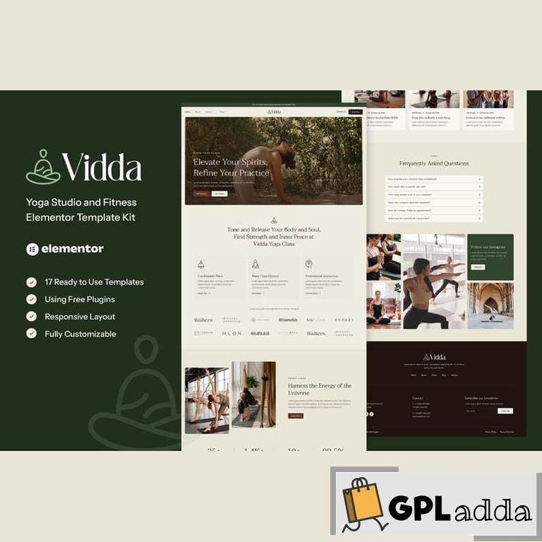 Vidda – Yoga Studio & Fitness Elementor Template Kit (NOT A WordPress Theme) is created especially for yoga studios, meditation centers, yoga instructors, wellness coaches, and any business or service related to yoga and meditation. Vidda has a simple, modern and clean design with 100% responsive layout, and very easy to customize and can be used by anyone without having to understand coding. This template kit includes stunning carefully crafted 13 Pages and 17 Stunning Templates, you can build your professional-looking website just a click away.