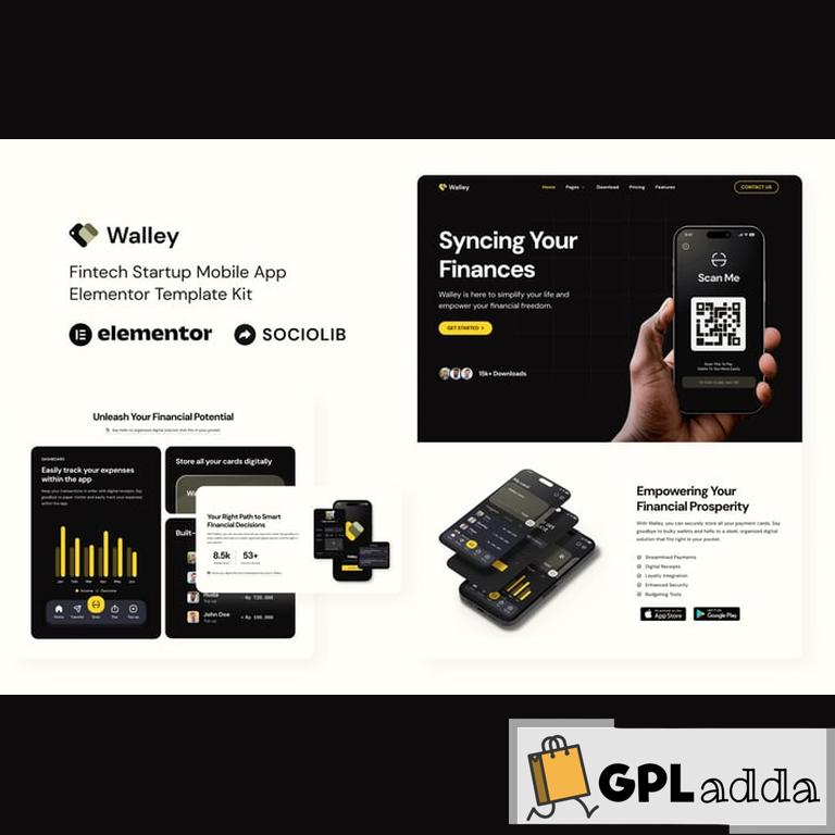 Walley – Fintech Startup Mobile App Elementor Template Kit