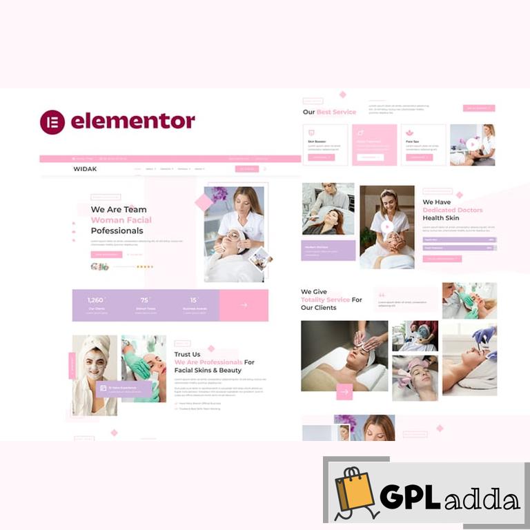 Widak – Facial Care & Beauty Treatment Elementor Template Kit is a collection of layouts for the Elementor page builder WordPress plugin, designed for use with Elementor Pro Version for a clean Design. It works with most themes and is optimized for use with the free Hello Elementor theme.