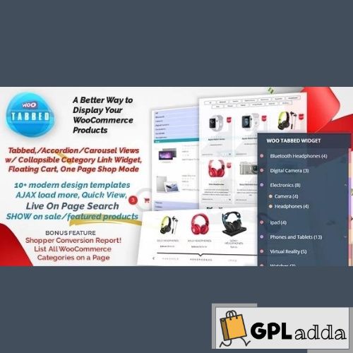 WooCommerce Tabbed Category Product Listing is an elegant solution to display woocommerce categories on Home page or any page. It shows All or Featured or Sale products category wise in tabbed, accordion or carousel format. Best possible solution if you want to List all your products in a single page or want to display just the products on Sale or your Featured products based on Categories. Pro version comes packed with 10+ elegant templates to choose from, ajax Load More, Floating Cart, Product Filtering, Live On-Page Product Search, Complete customization, and many more advanced settings.