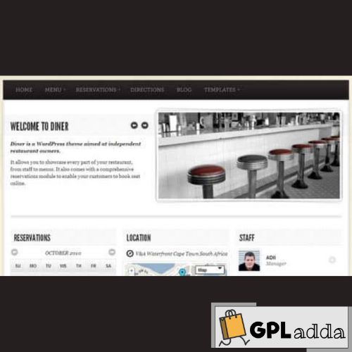 Diner is a delicious restaurant / bar WordPress theme from WooThemes. The theme allows you to present your food menu, business hours, location, and make a table booking online via a custom built-in reservation system. The Diner theme includes a customisable homepage layout, food menu page template with pictures, 15 custom widgets, 11 alternative colour schemes, theme admin settings panel and more.