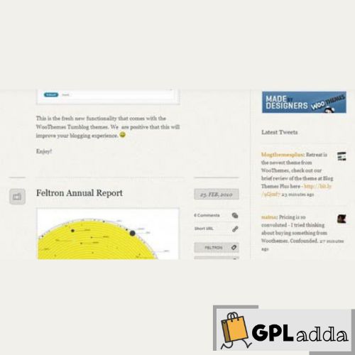 Retreat is a microblog premium WordPress theme from WooThemes designed for micro-blogging with WordPress. The theme will turn your WordPress site into a microblog similar to Tumblr and allow you to quickly and easily post content such as notes / articles, images, video, audio, quotes & links etc, via a custom QuickPress interface. The Retreat microblog theme includes 7 different colour schemes and a AJAX twitter widget that updates every few minutes and also track keywords.