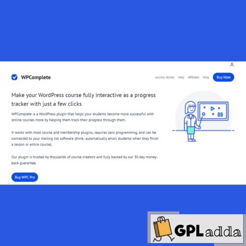 WPComplete is a WordPress plugin that helps your students become more successful with online courses more by helping them track their progress through them.