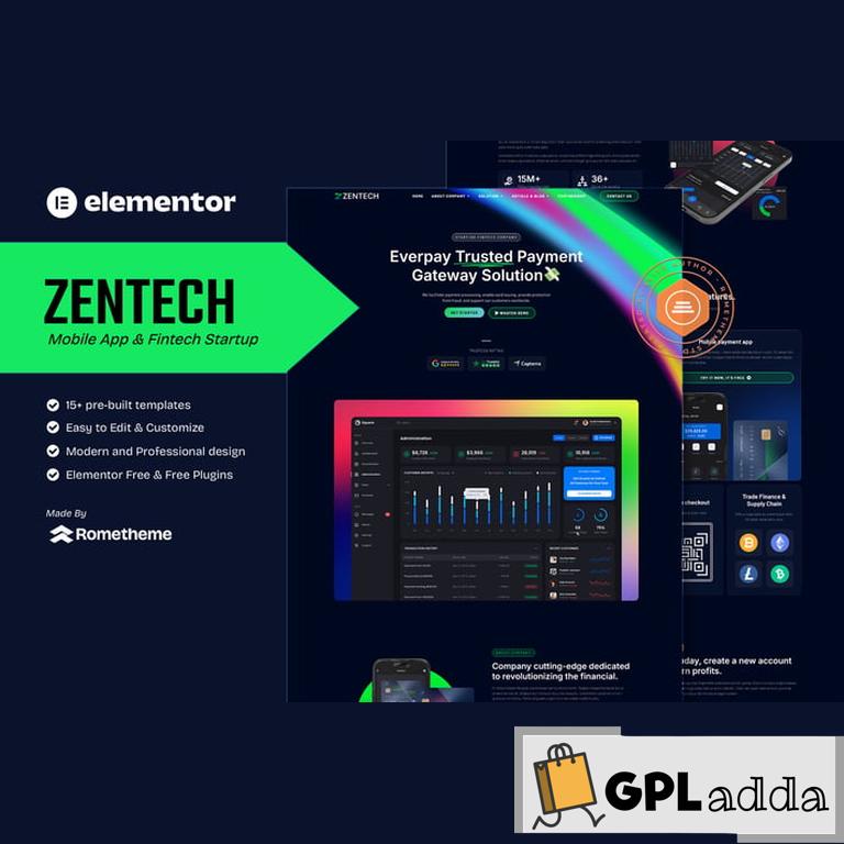 Zentech – Mobile App & Fintech Startup Elementor Template Kit