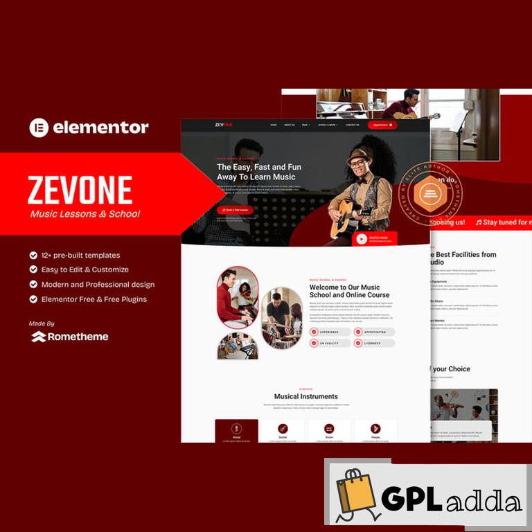 Zevone – Music Lessons & School Elementor Template Kit